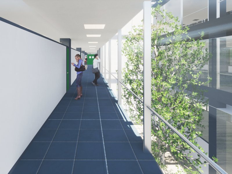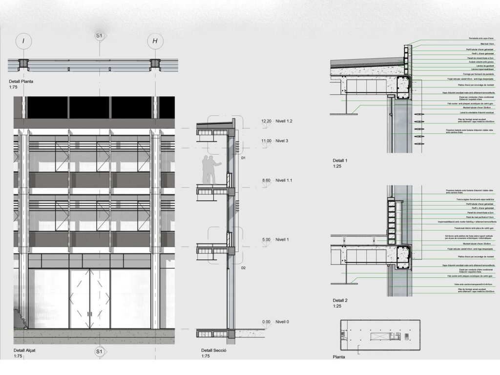 Els edificis es desenvolupen com a espais versàtils i flexibles, on els tancaments busquen minimitzar la radiació solar a l’estiu, sense impedir la il·luminació natural, facilitant també la ventilació natural i reduint les despeses energètiques.